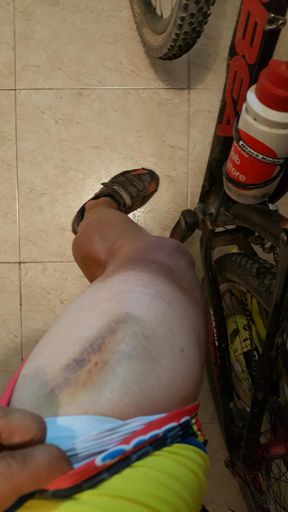 Probando la bici de MTB después de la caída, las heridas no molestan mucho