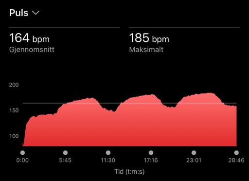 Fartsblokk økt 6/15: 3 x 5 min, p: 3 min jogg