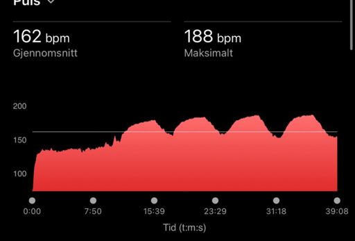 Fartsblokk økt 7/15: 4 x 4min, p: 3min jogg