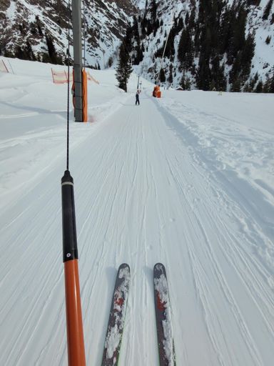 Skiabfahrt am Morgen