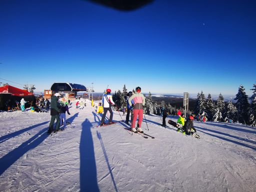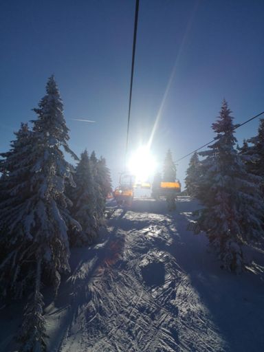 Skiabfahrt am Morgen