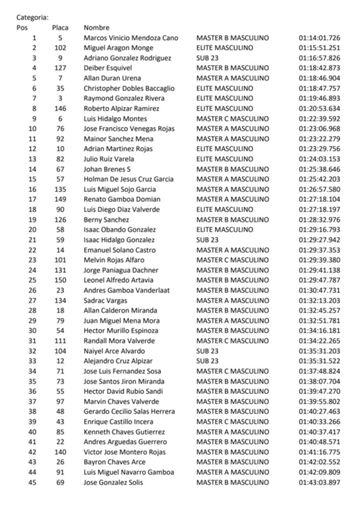 1ra del año, Sunset Atenas 1er Lugar Master B 1er Lugar General 1H:14min