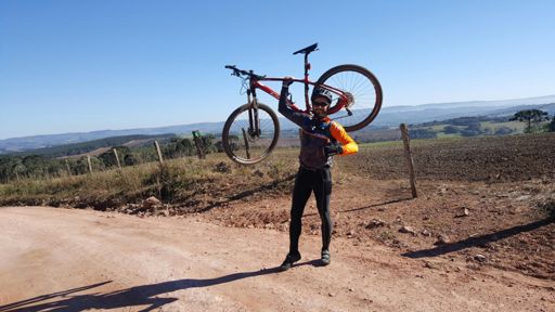 Volta de bicicleta de montanha ao entardecer