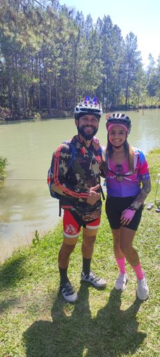 Pedalada de mountain bike ao entardecer