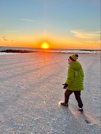 Sunset seagull chasing
