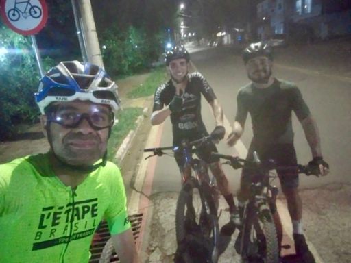 Pedalada de mountain bike ao entardecer