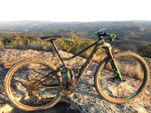 Pedalada de mountain bike ao entardecer