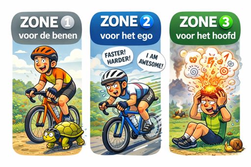 Zone 1⚪️ voor de benen, Zone 2🔵 voor het ego, Zone 3🟢 voor het hoofd 🤕