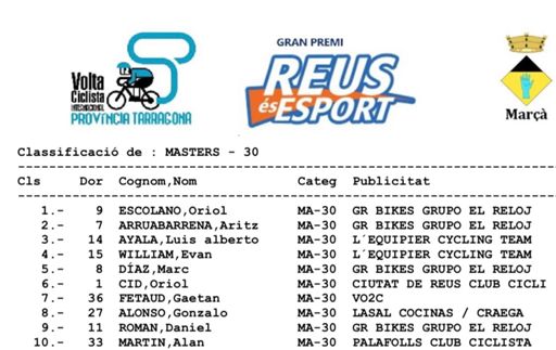 Vuelta Tarragona Etapa 1 - 3er puesto M30
