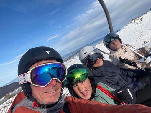 Ski alpin le matin en famille