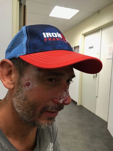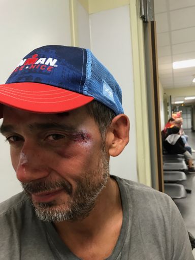 Sortie Velo avec finish à l'hôpital. Conclusion le vélo c'est dangereux et Merci le casque