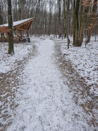 Run in the snow-park, around the house. Nice/Ice