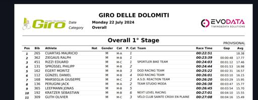 Giro delle Dolomiti Stage 1 - 4th Overall, 2nd Age Group