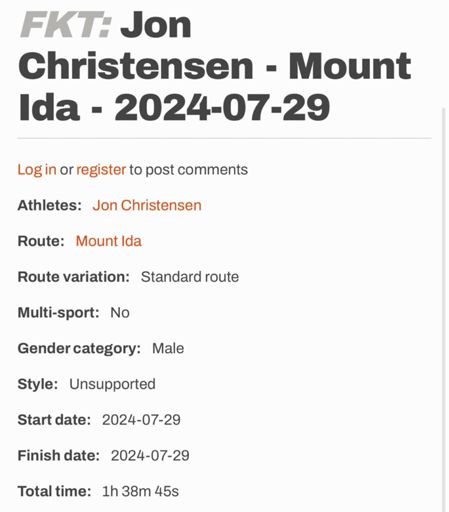Mount Ida FKT
