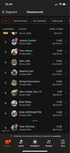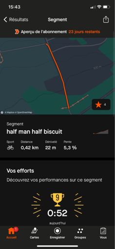 Entraînement cote à faire 5 fois, pas loins de 🤢 ça brûle les cuisses mais on vas chercher la 9eme place du segment quand même 💪