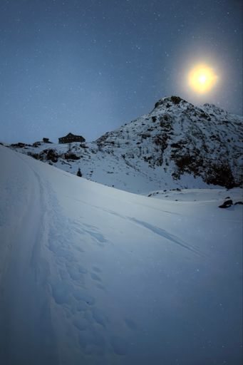 Skiabfahrt am Morgen