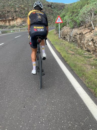 Con el grinch, vestido de Wout van aert, a ritmo de la wamampi como buen gomero que es …..ENTRENO DE ANTAÑO