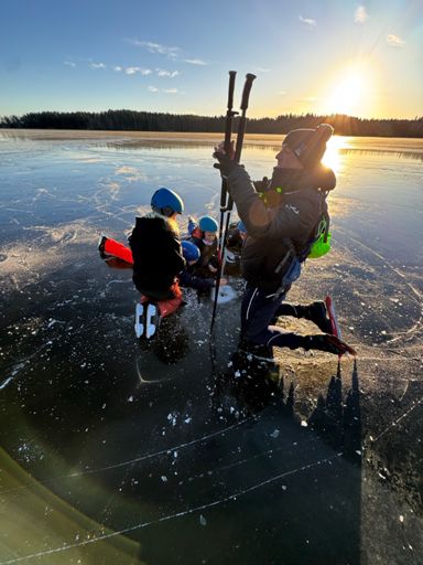 Skøytedag pĂĽ Alnsjøen. Hockeykamp etterpĂĽđ