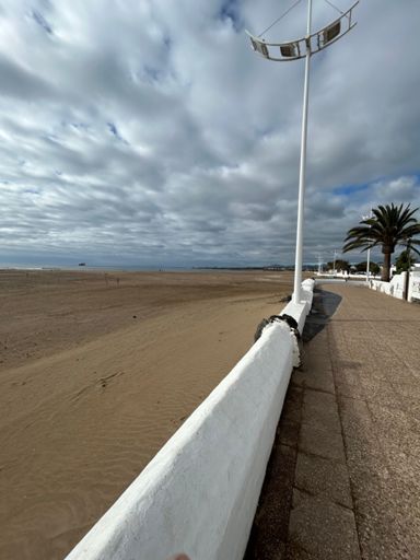 Lång löplänk på sand, asfalt och stranden