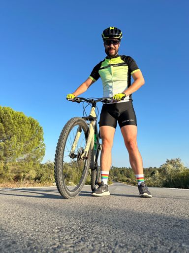Volta de bicicleta de montanha ao entardecer
