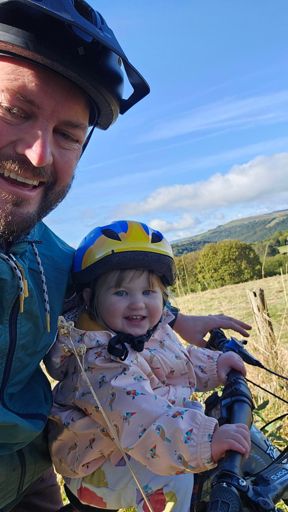 MTB with Frida riding shotgun!