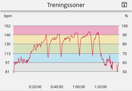 5 - 10 - 15 - 10 - 5 sweetspot, med litt pirring av rÞd sone pÄ slutten av hvert drag