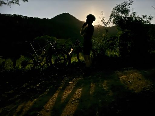 Pedalada de mountain bike ao entardecer