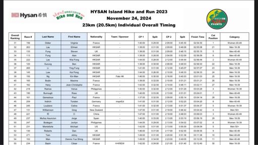 Hysan 21k Trail Race: Official time 2hrs 55m 15s, placed 33rd, 5th 40-49 Age Cat