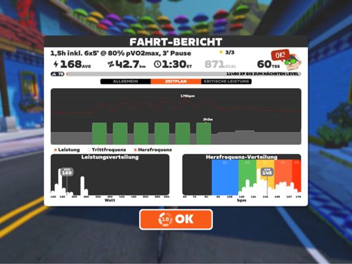 Zwift - 1,5h inkl. 6x5' @ 80% pVO2max, 3' Pause in Watopia