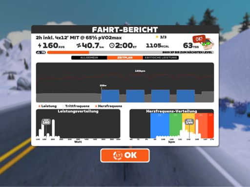 Zwift - 2,5h inkl. 4x12’ MIT @ 65% pVO2max in Watopia