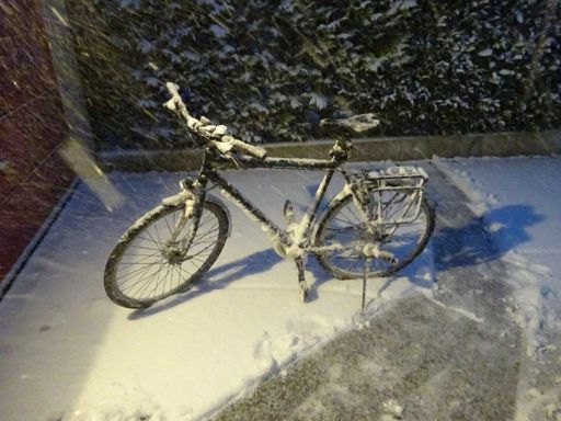 Mit dem Stadtrad durchs Schneegestöber