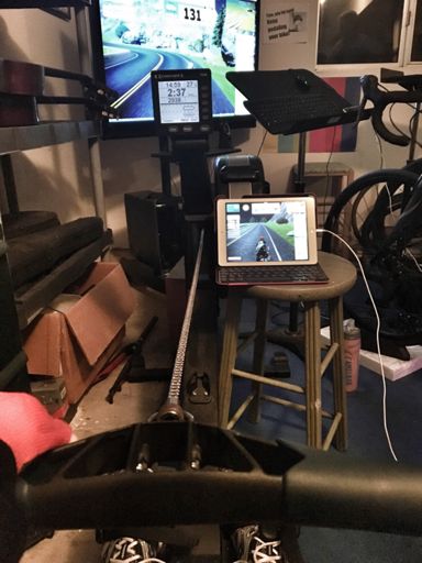 Hill repeats on Zwift with a rower