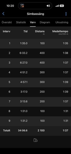 Enkel stege 2x400, 2x300, 2x200, 2x100, tot 2000m