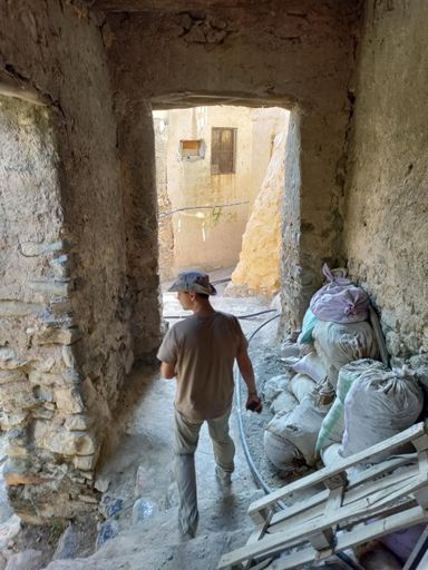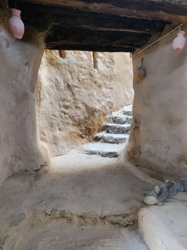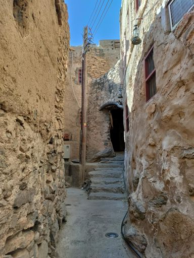Vesnička Misfah a podél levád mezi farmami a políčky