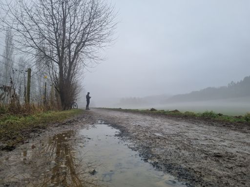 Nebelfahrt oder zwei radelnde Würstchen in der Suppe