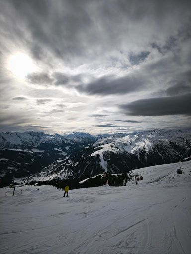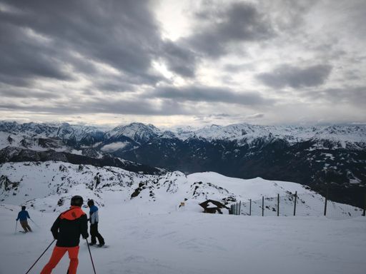Skiabfahrt am Morgen