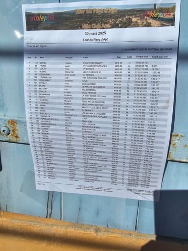 Tour du Pays d'Apt 2eme Etape Tom partie des le départ rejoint par Faure et Morel Tom 3eme derrière contrôle de la course avec Alex 5eme