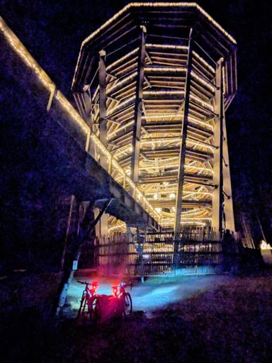 Weihnachtlich beleuchteter Baumwipfelpfad auf dem Sommerberg, mit Jochen