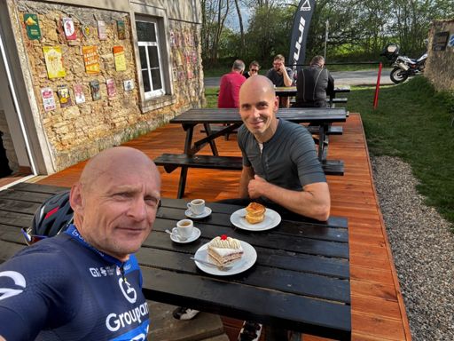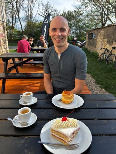 Sortie trés sympa avec Norbert 🇫🇷. Bla bla et bon Café et gâteau ☕️🍰. 🤡🚴♂️
