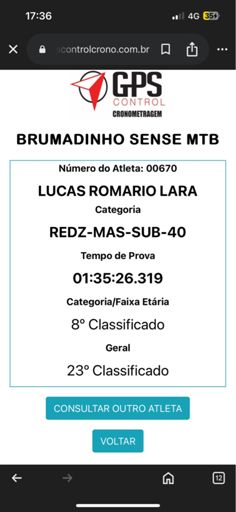 Brumadinho Sense MTB- 8º lugar reduzido cat. Sub 40.