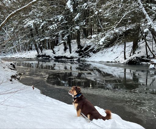 Poppy walk on a very cold morning - yes to snow bath but she declined the ice bath.