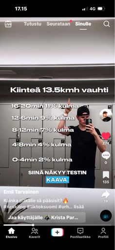 Kuvassa on treeni. Mutta 13km/h kiinteä vauhti ja 3minsaa kesti yks nousu setti mutta meni 13% vielä.
