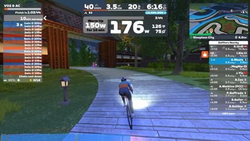 Zwift - VO2 & AC on Sleepless City in Makuri Islands