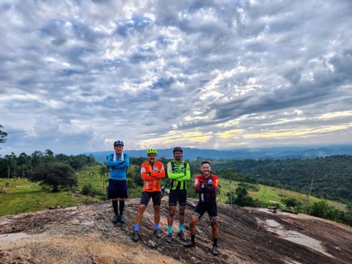 Pedalada de mountain bike ao entardecer