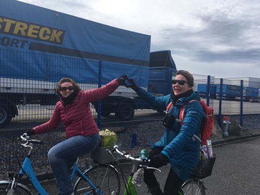 dr Liebste s Schneebike zeigt