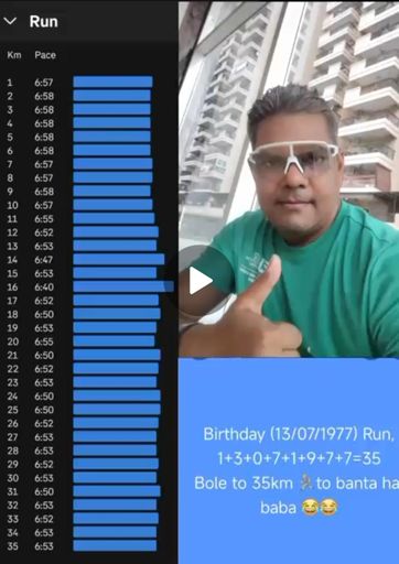 Birthday (13/07/1977) Run 1+3+0+7+1+9+7+7=35 Bole to 35km Run 🏃to banta hai 😂