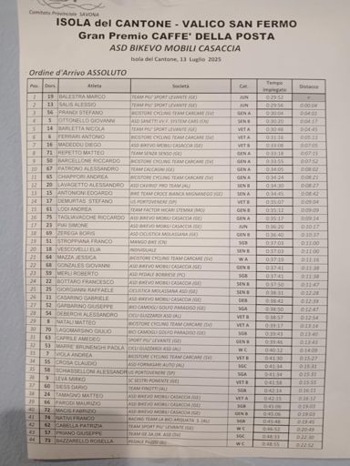 7° Gara Cicloscalata Valico di San Fermo 9° assoluto e 3° Categoria