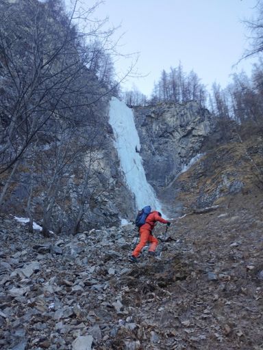 Cervieres. Ancrage de Dent WI5 y La vie Aventureuse M5+
