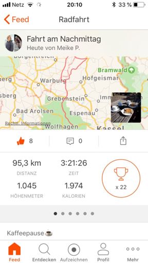 3. Einheit heute, mit Meike, Akku hat schlapp gemacht, es fehlen 37km