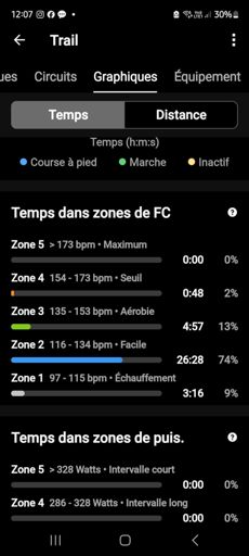 20'echauffement, 3×8' Zone 3 et 20 min recup